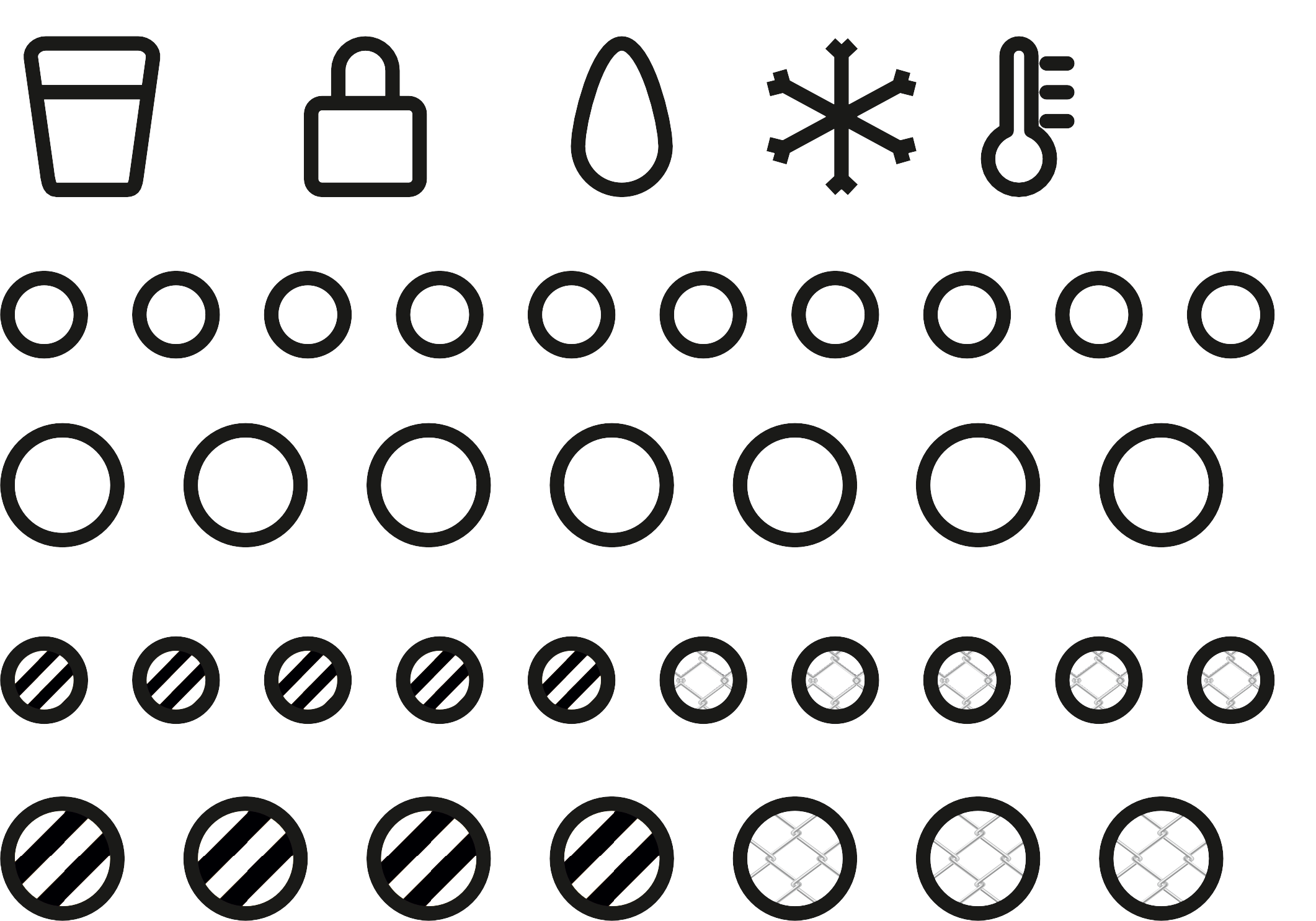 dešinę pusę brūkšnių užpildu 5 vnt. - Ø12 mm apskritimas su tinklo užpildu 5 vnt.